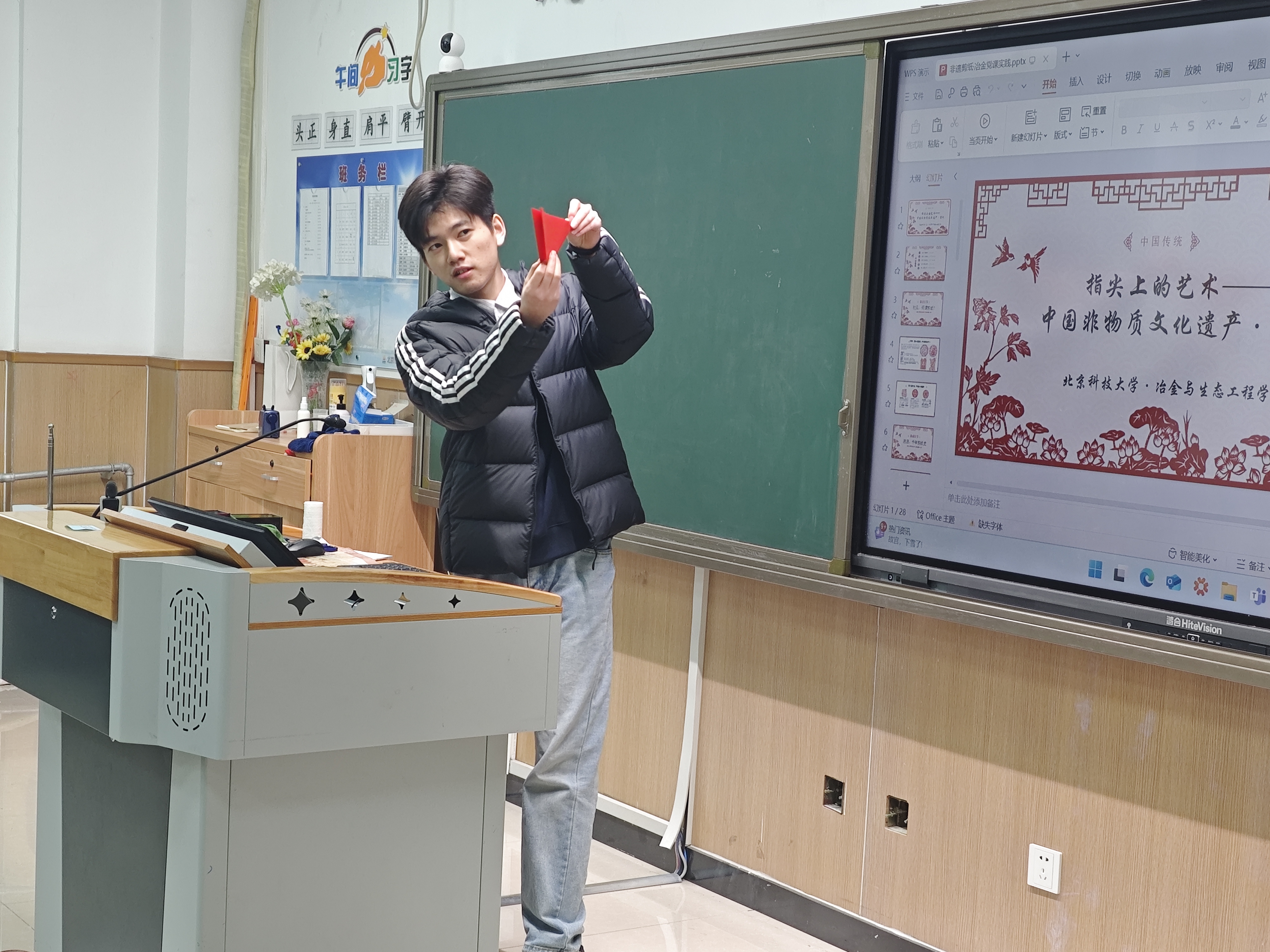 12月12日冶金团队前往巩华学校进行剪纸传统文化宣传,并现场展示剪纸方法,小学生们跟随科普老师认真学习,得到了属于自己的剪纸作品。