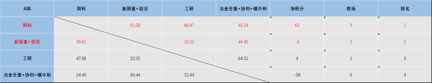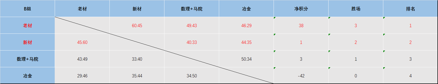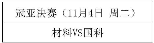 小组赛结束后,有材料、新材料全重+前沿、新材、国科四支队伍晋级。经过淘汰赛激烈的角逐,材料、国科两支队伍挺进将于周二进行的冠亚决赛。新材料全重+前沿和新材两支队伍将于周一进行季军赛。期待球员们的精彩表现!