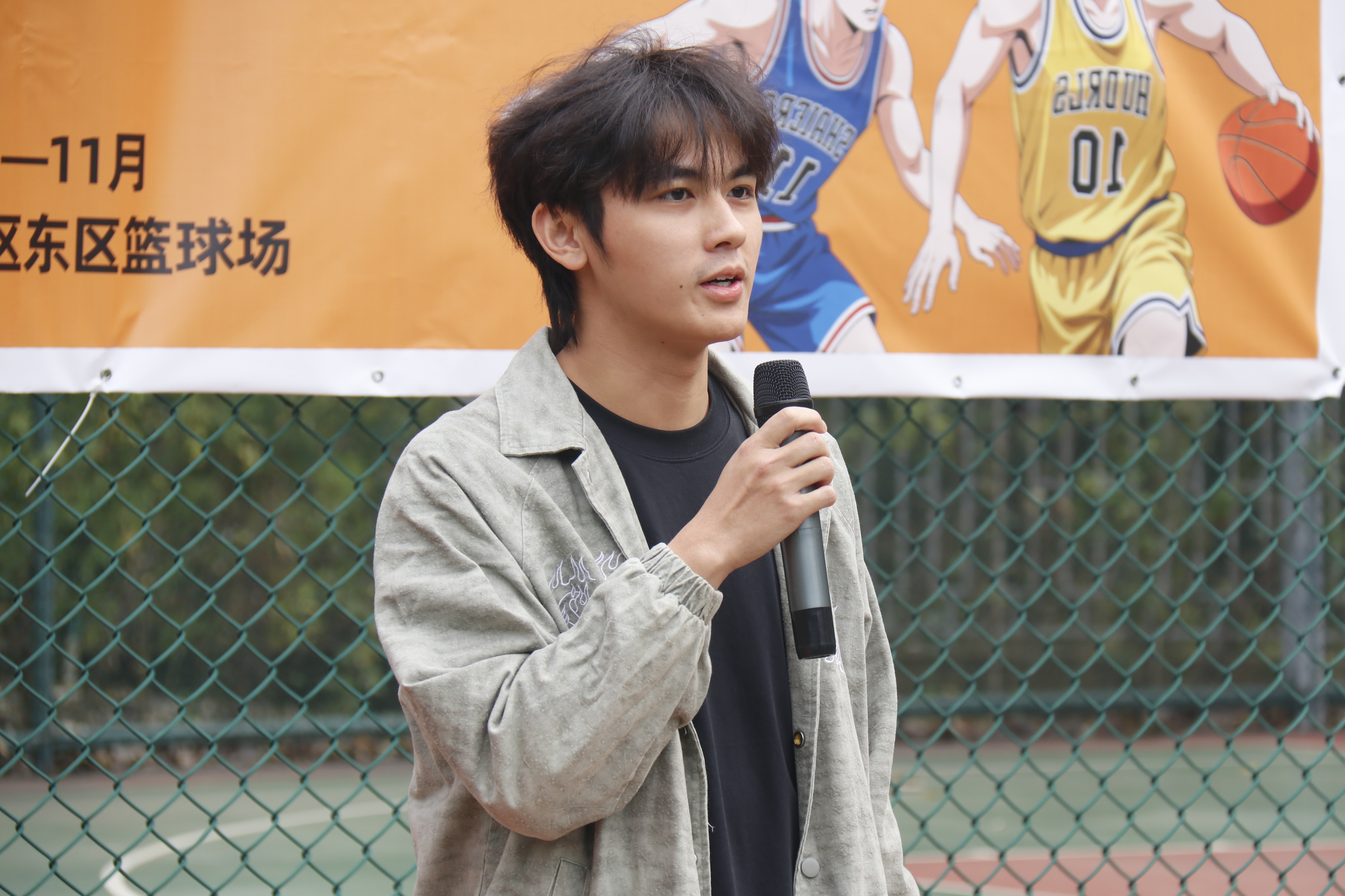 材料科学与工程学院邓泓泰同学作为裁判员代表进行发言:“作为一名合格的裁判员,我们将以专业为尺,严守篮球规则;以公正为心,不偏不倚执裁,全力为大家打造有序、纯粹的赛场环境。愿各位运动员赛出青春风采,赛出团队水平!”