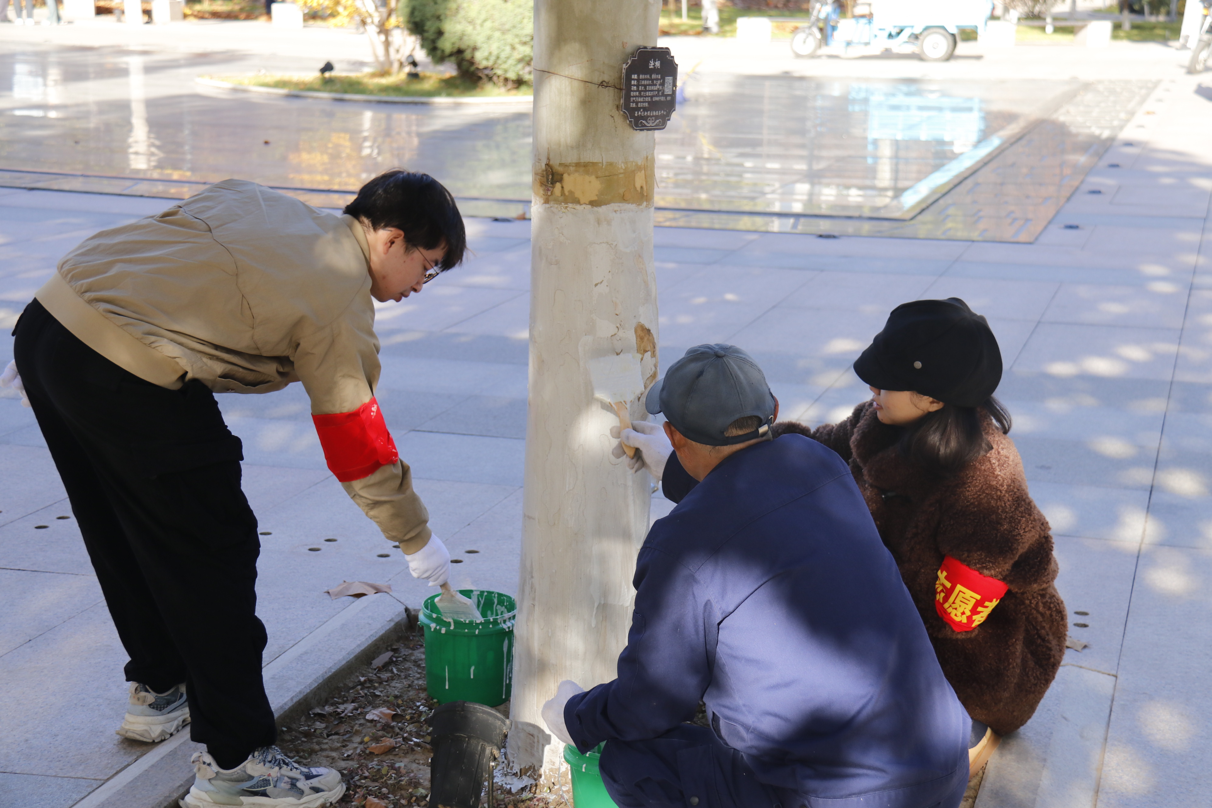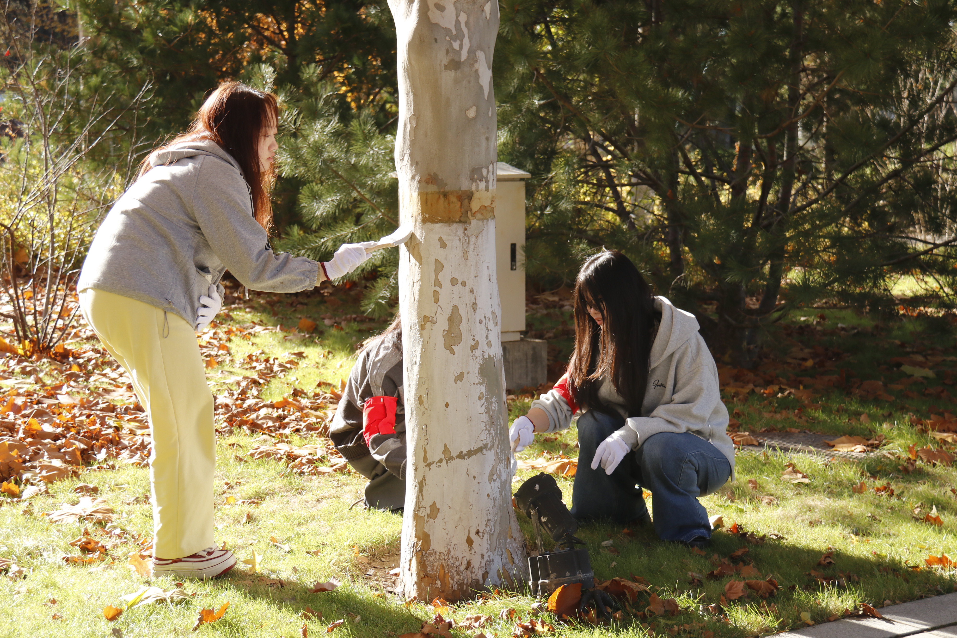 在实地操作环节,师生们在专业指导下完成了从清理树干、确定涂白高度,到均匀涂刷、检查补浆的全流程操作。大家分工协作,认真完成每一个步骤,不仅掌握了实用技能,更深刻体会到劳动的价值与意义。