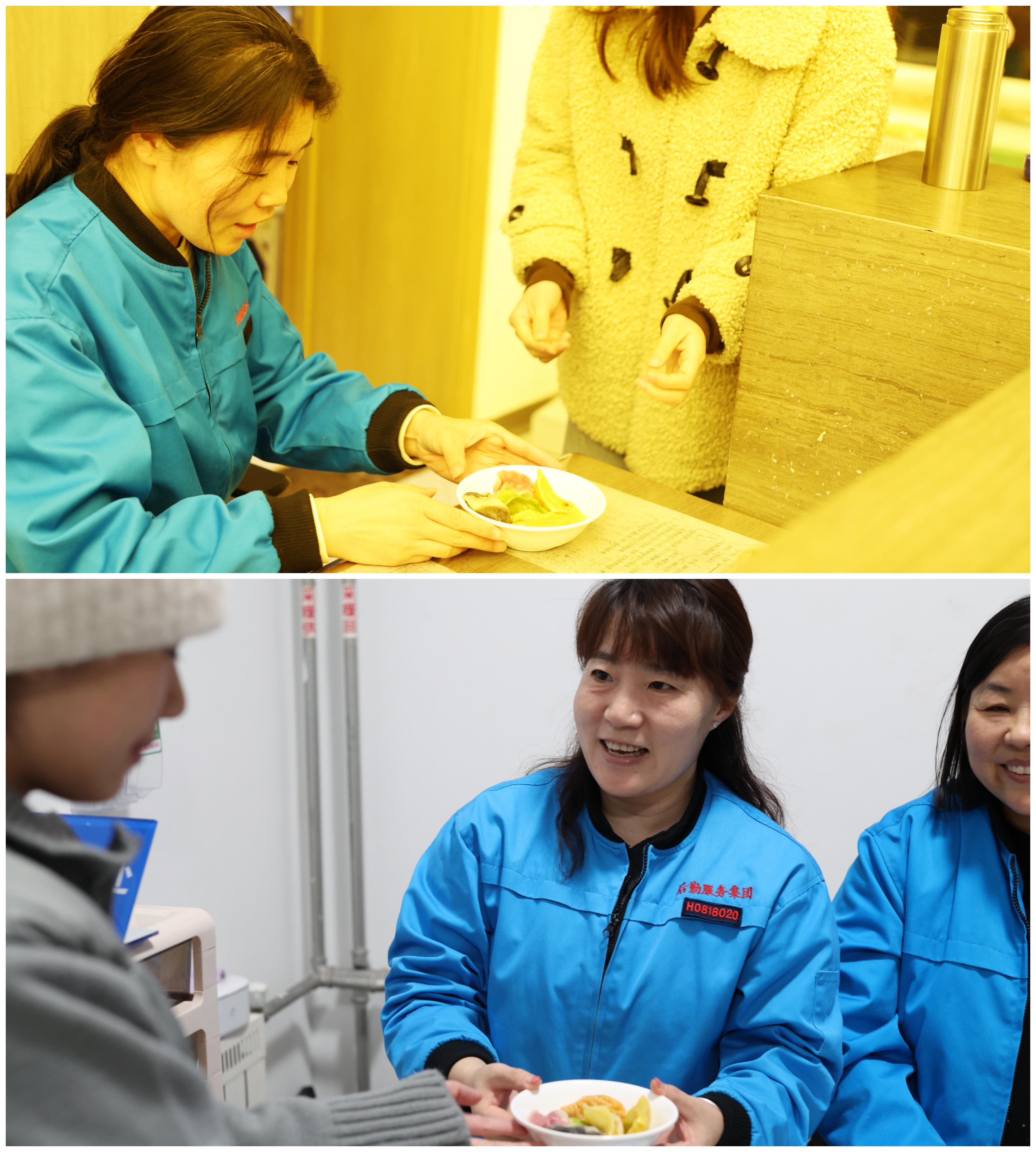 代表团成员心系坚守岗位的宿舍值班人员,专程将刚出锅热腾腾的饺子送到至诚斋、至美斋、至善斋值班人员手中,同时送上亲切的问候,不仅温暖了值班人员的胃,更彰显了代表团服务校园的责任与温度。