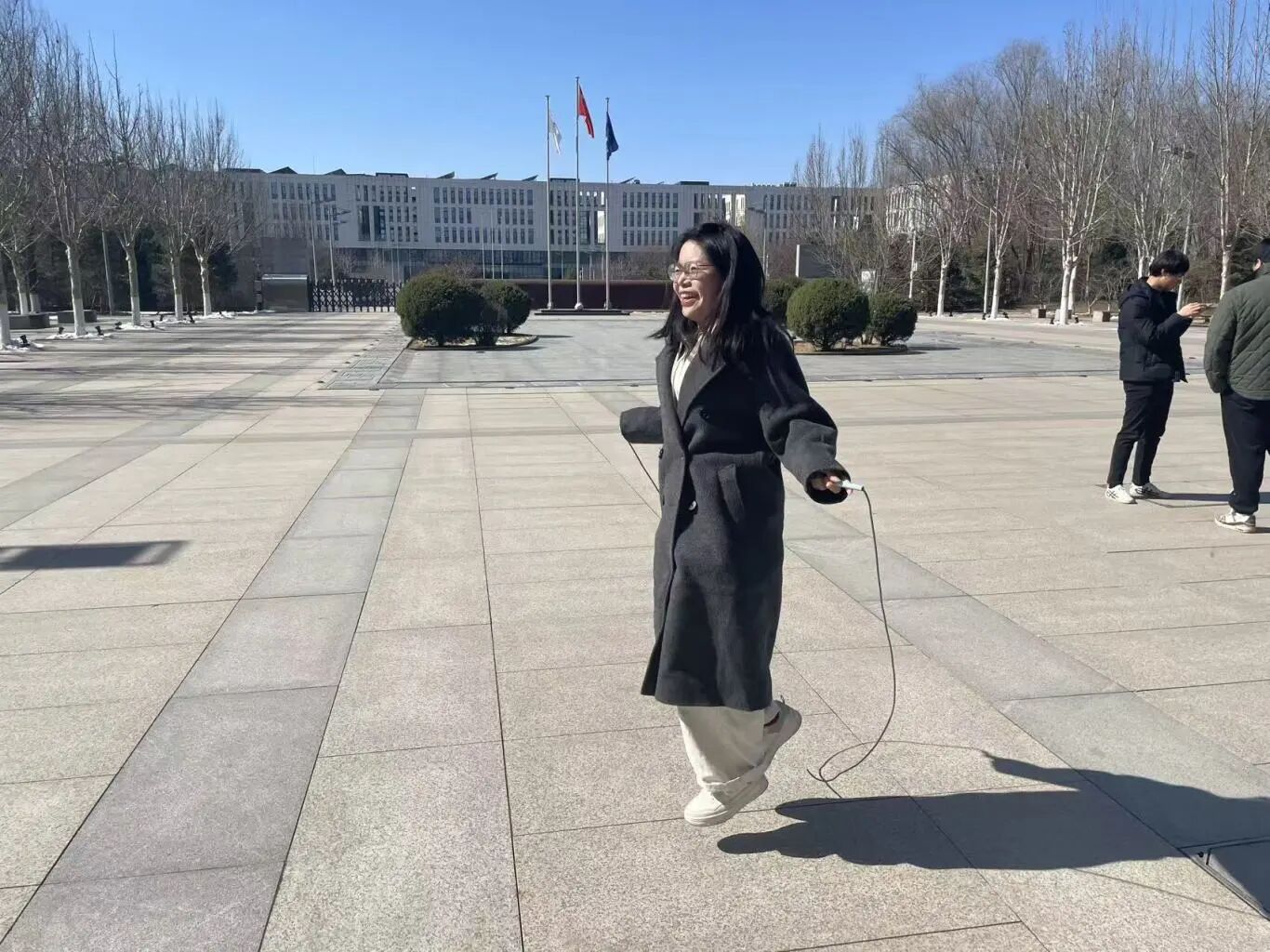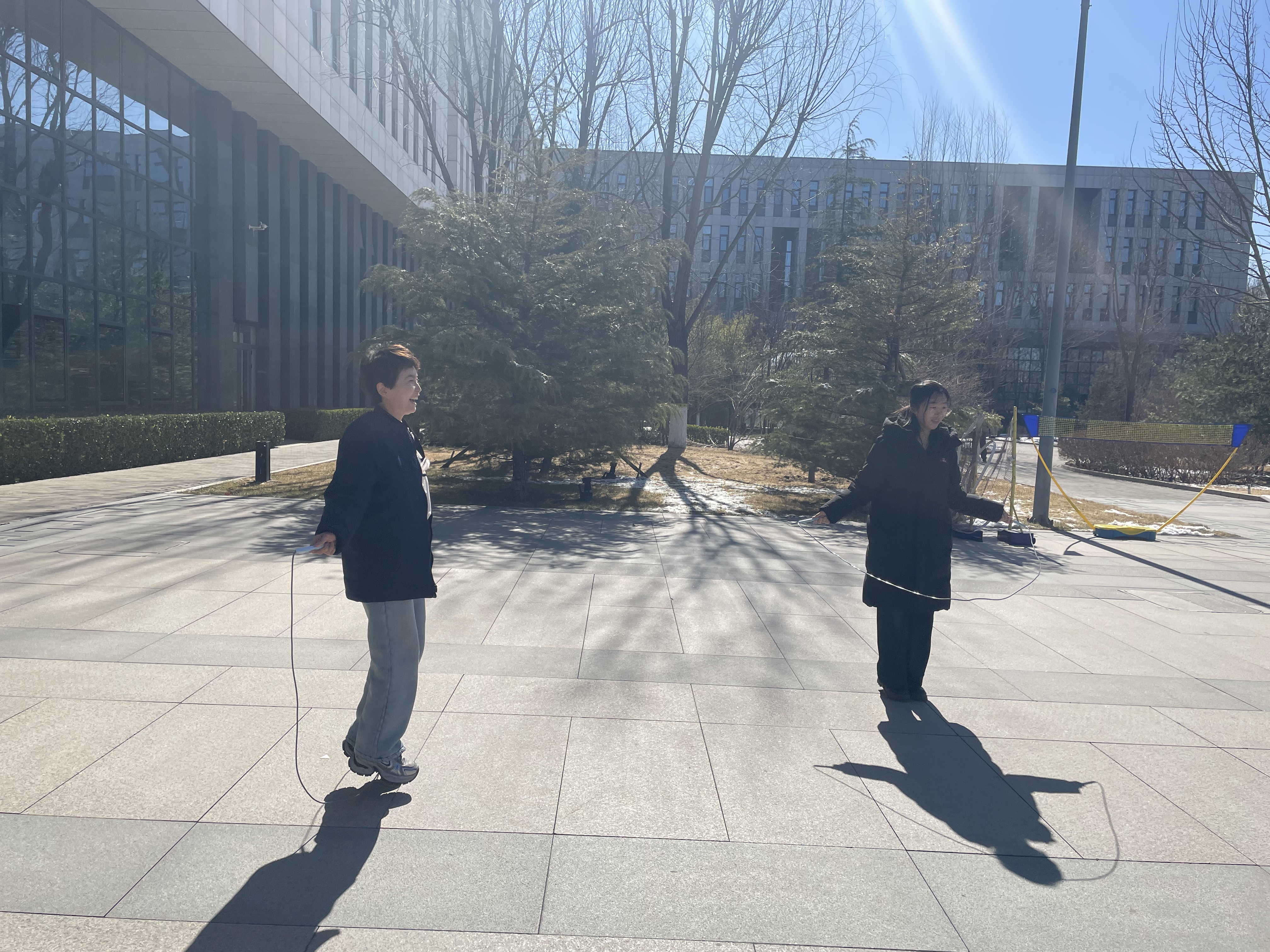 跳绳的老师们脚步轻快、身手矫健,伴着节奏甩动长绳,身姿轻盈跳跃,尽显活力满满的巾帼风采。