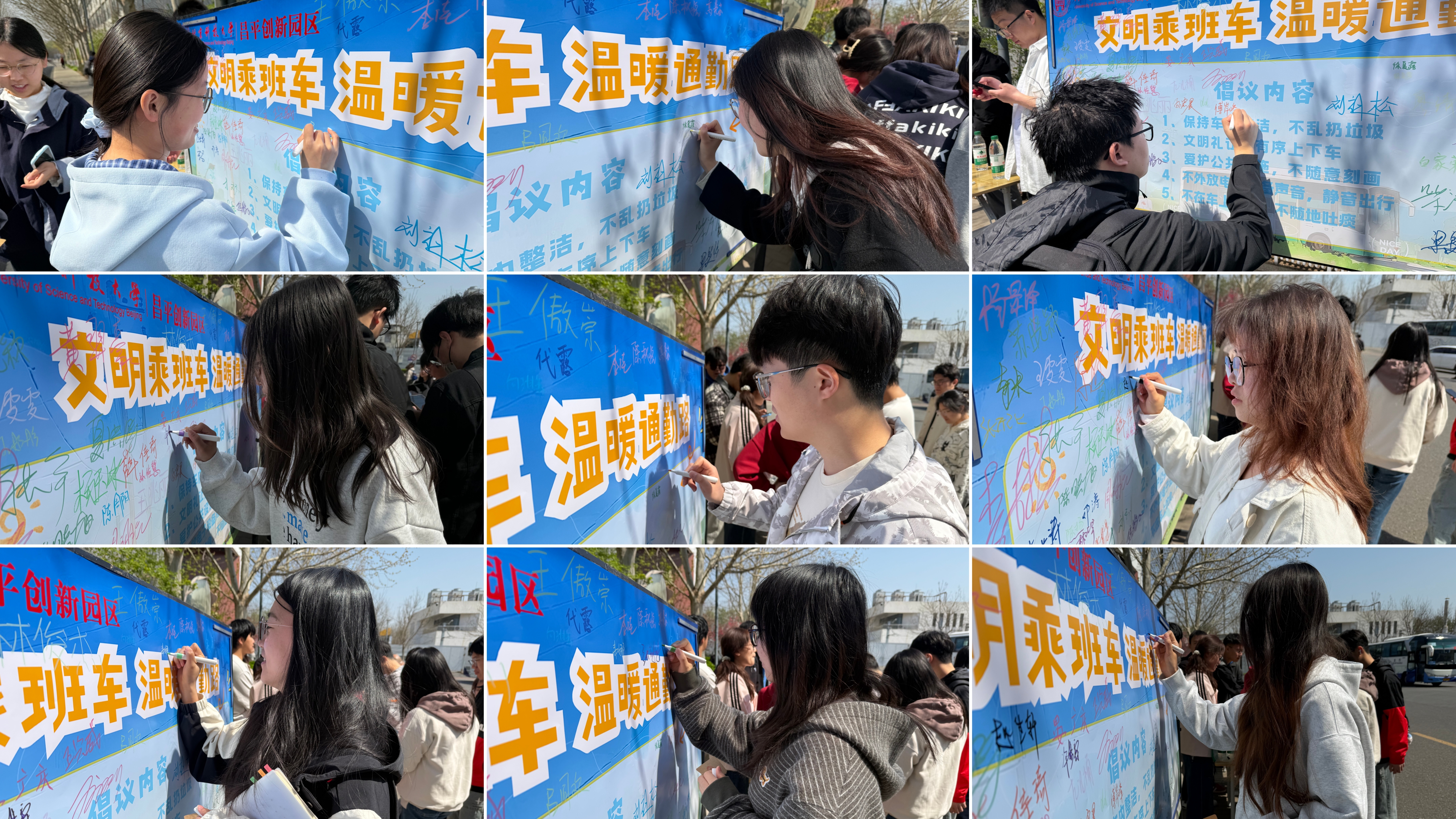在倡议海报签名区,大家郑重签下名字,以实际行动表达对文明乘车的支持与承诺。