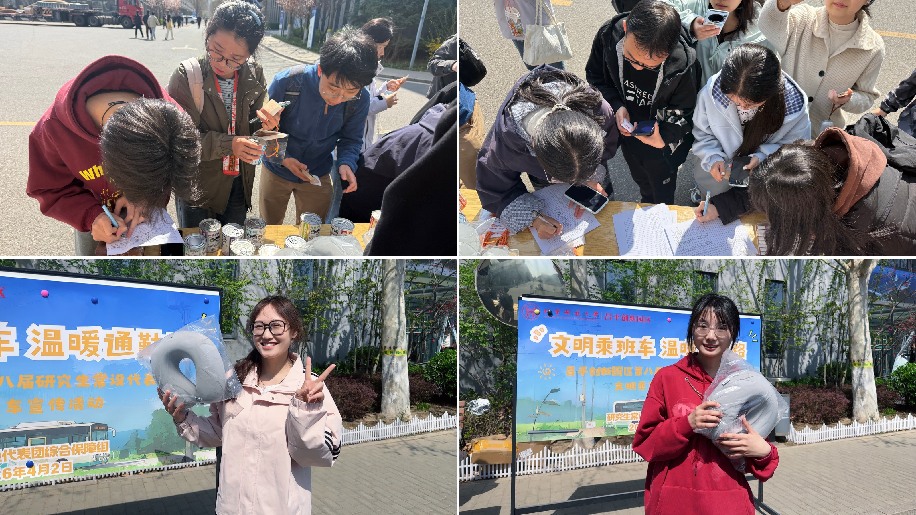 为进一步倡导文明乘车理念,营造舒适、有序的校园班车环境,4月2日,园区第八届研究生常设代表团综合保障组组织开展了“文明乘班车,温暖通勤路”主题活动。园区学生积极参与活动,在互动体验中深化文明意识,在轻松氛围中凝聚共识,共同为建设更加和谐有序的通勤环境贡献力量。