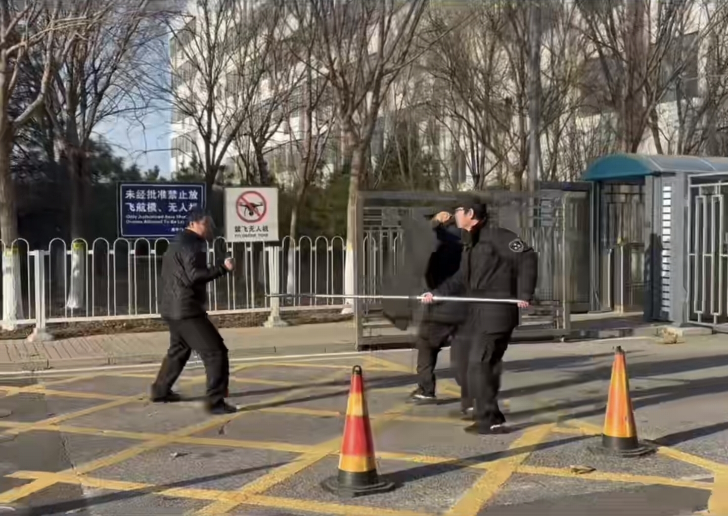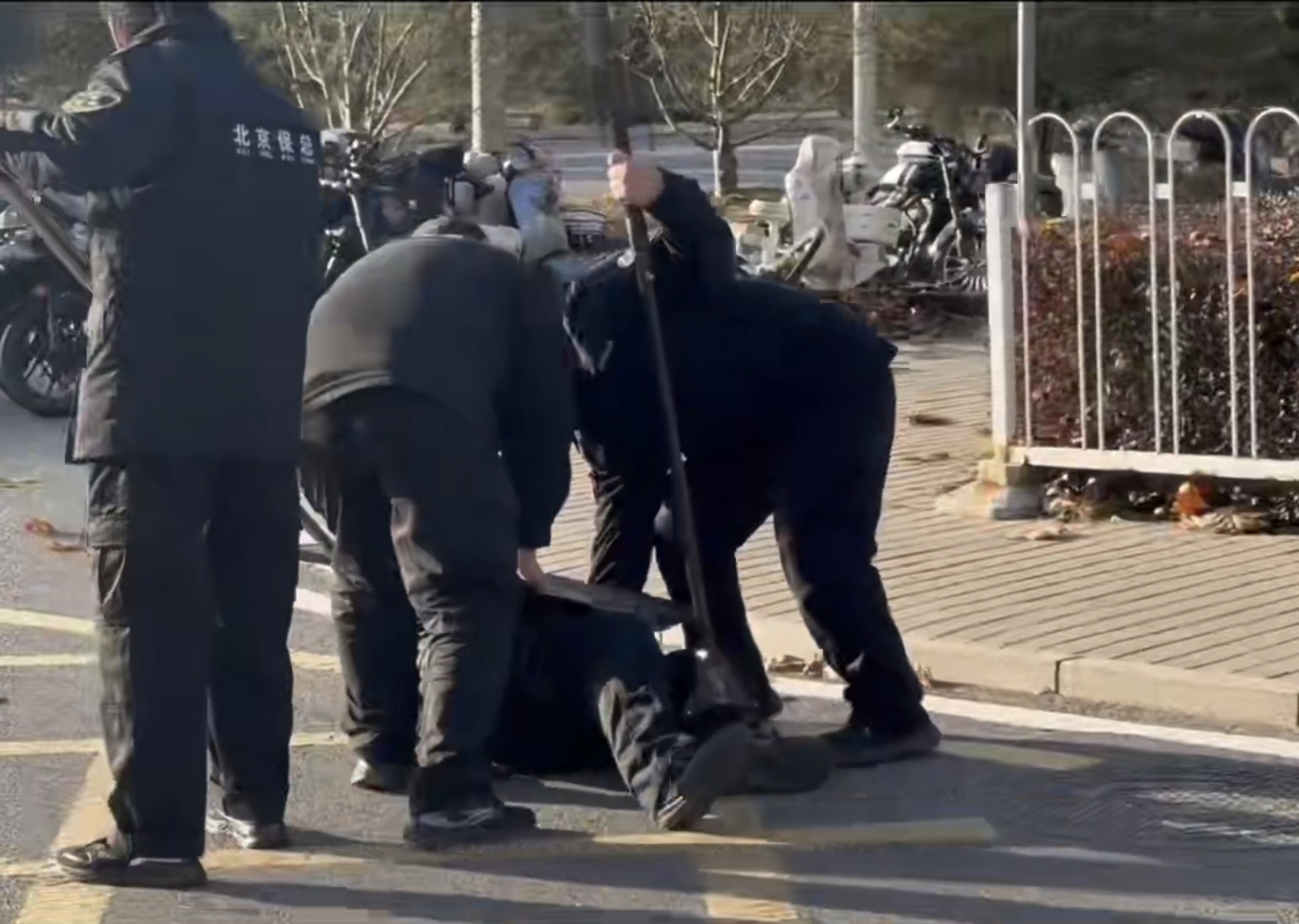培训结束后,实战演练在园区东区西北门紧张有序地展开。演练模拟一名寻衅滋事的“歹徒”强闯校园,面对突发险情,门岗值守人员迅速反应,一边利用防暴器械进行先期阻拦与周旋,一边立即拨打110向公安机关报警。在应急小组的协同配合下,安保人员最终成功将“歹徒”制服,有效控制了事态发展。