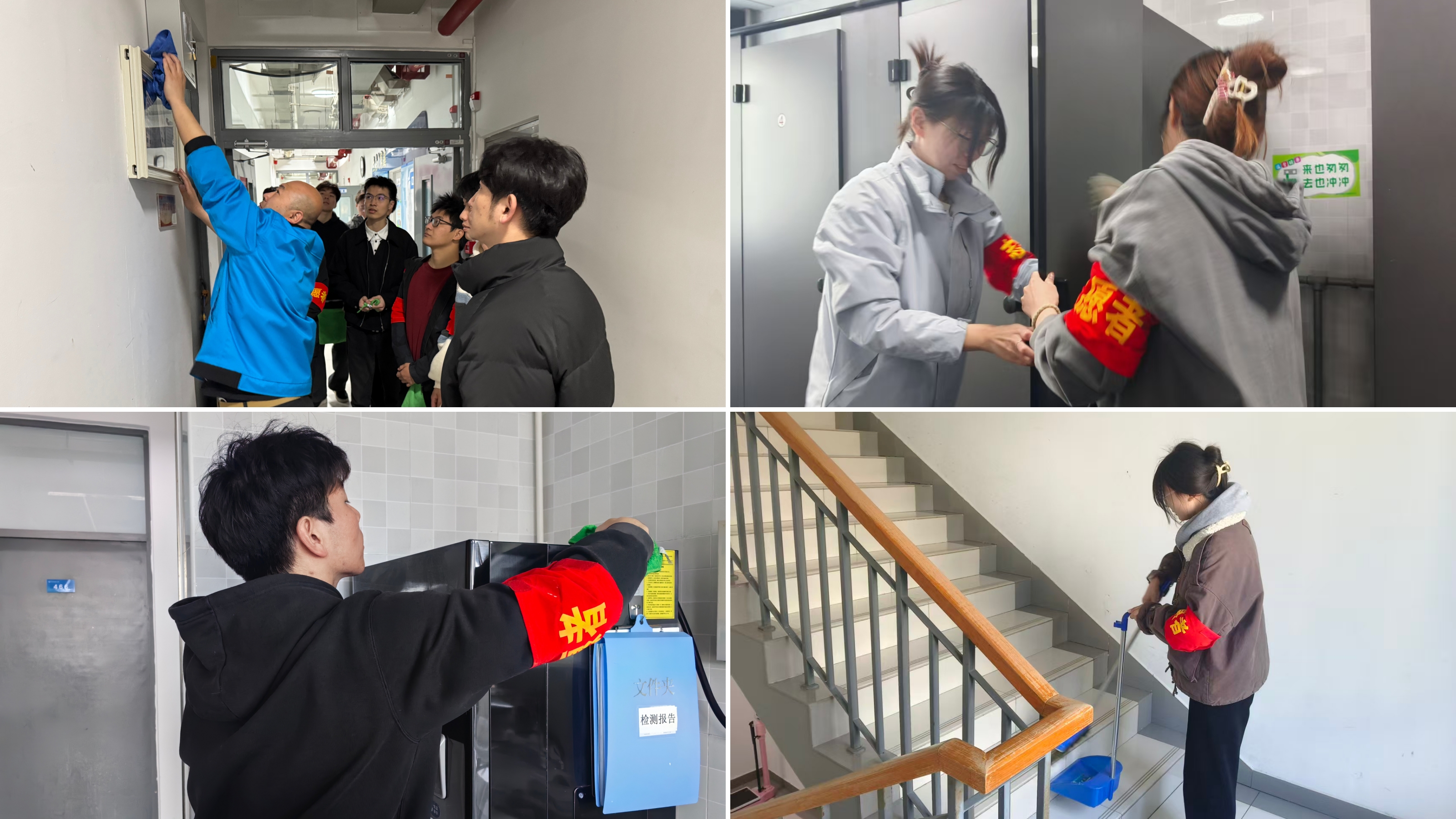 与此同时,在各公寓楼栋的公共区域,“公寓楼栋大扫除”行动同步展开。同学们分工协作,有的仔细擦拭楼梯扶手、窗台,清理墙面灰尘;有的认真清运楼道内的堆积杂物,确保消防生命通道绝对畅通。他们忙碌的身影,成为了园区春日里一道亮丽的风景线。