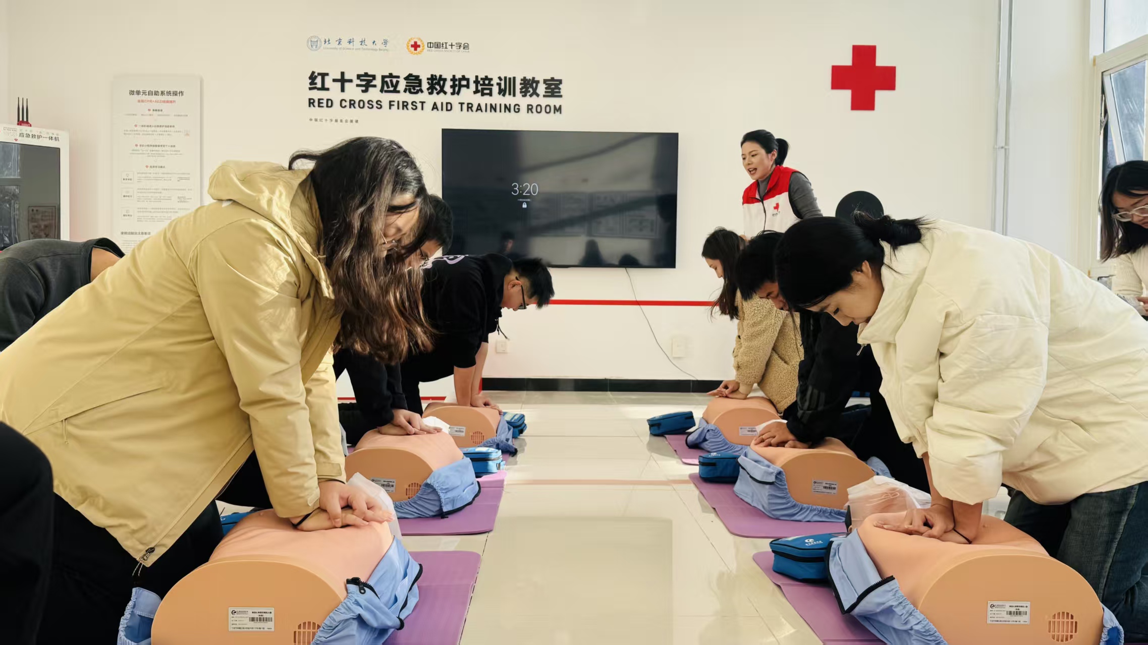 本次培训特邀北京市红十字会的培训基地专业导师李卫现场授课,通过理论讲解与实操演练相结合的方式,让参训师生系统掌握应急救护技能,筑牢校园安全防线。